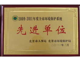 北京唯德環保科技有限公司在2009年度至2011年度,被北京人事局,北京環境保護局評為北京市環境保護系統“先進單位”